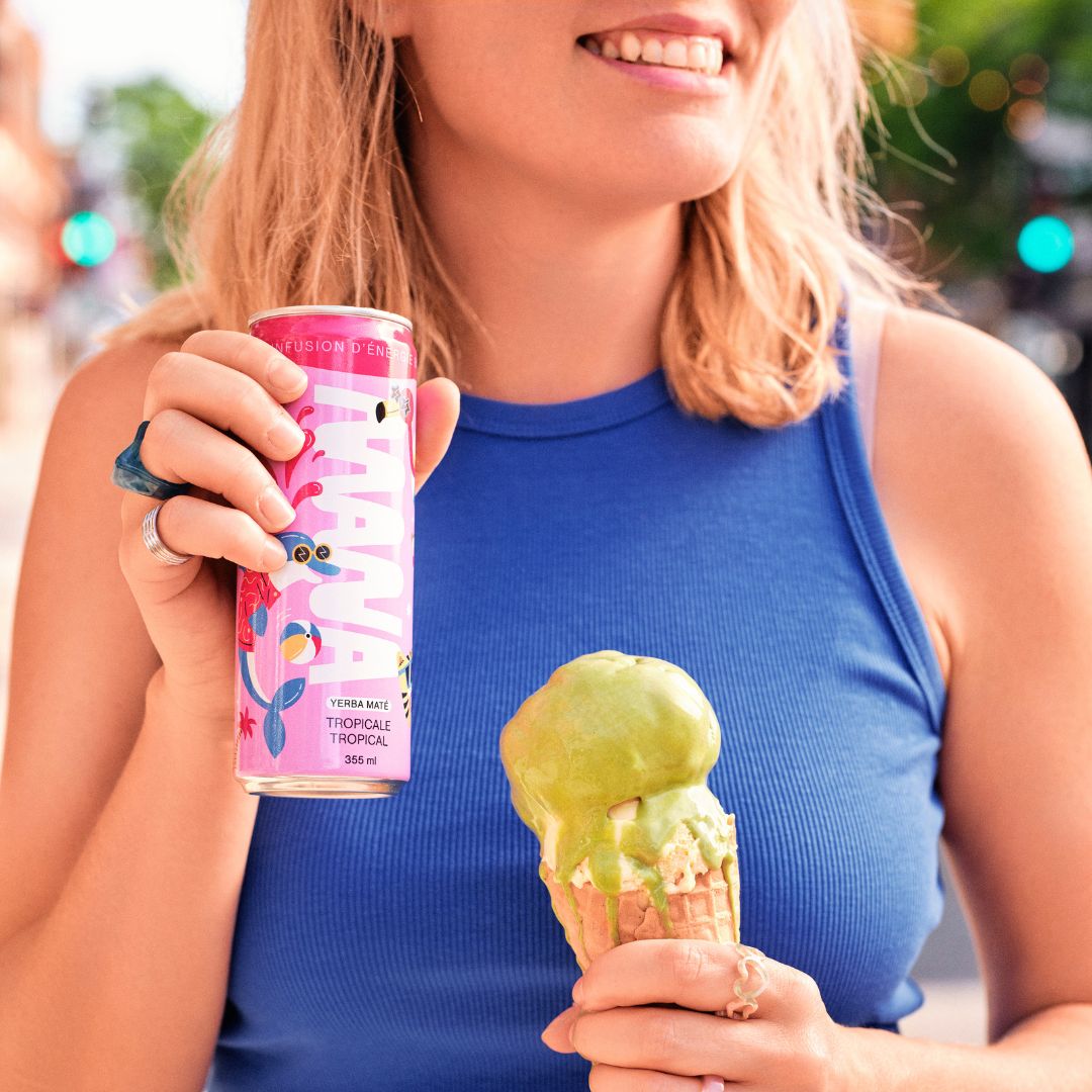 Mana – Yerba Maté Tropical bursts with bright, tropical flavor and natural energy. With its sunny orange-yellow hue and rich foamy head, this sparkling tea combines juicy papaya and ripe mango with subtle notes of exotic spice. The balance of sweetness and gentle bitterness creates a refreshing, beer-like effervescence — uplifting and smooth from the first sip to the last.