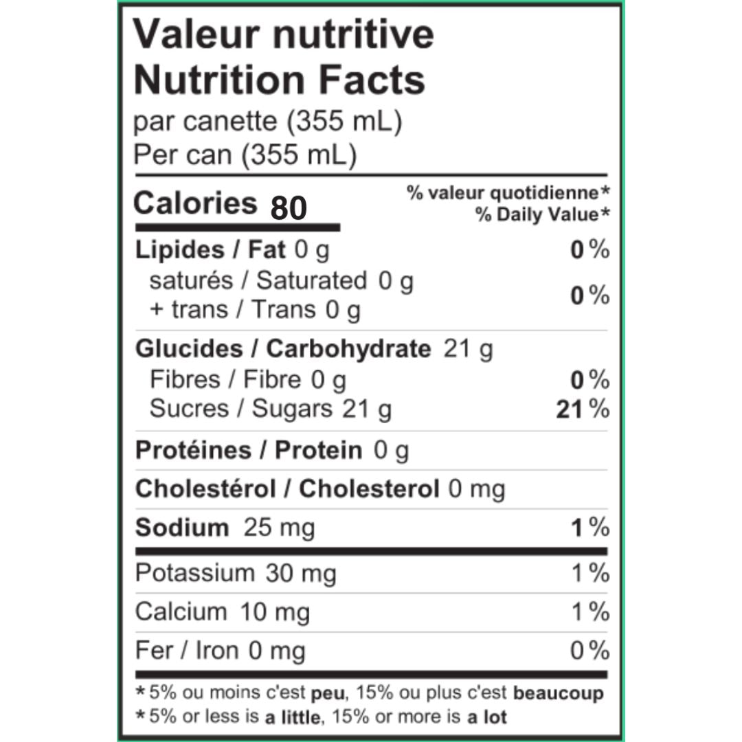 Ingredients: Carbonated filtered water, cane sugar, natural flavours, citric acid, sodium benzoate, potassium sorbate.