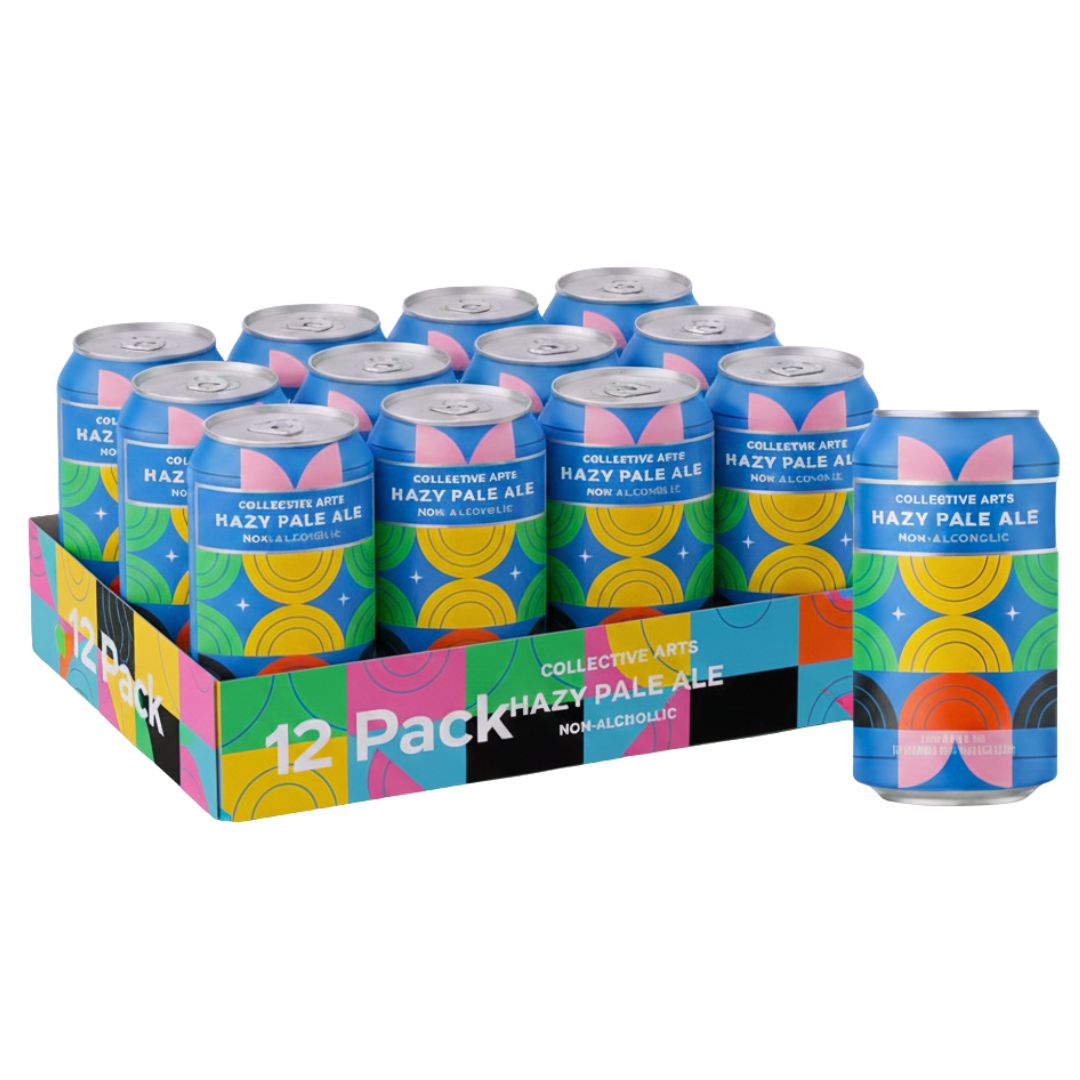 Here at Collective Arts, we want everyone to come to the party! That's why we created this non-alcoholic pale ale that was brewed as a traditional New England hazy pale ale. It contains a unique yeast that brews a very low alcohol version of our classic hoppy beer. Using mosaic and citra hops, this brew is citrusy with tropical fruit, hop aromas and bright red berry notes. Pairs perfectly with a good time.