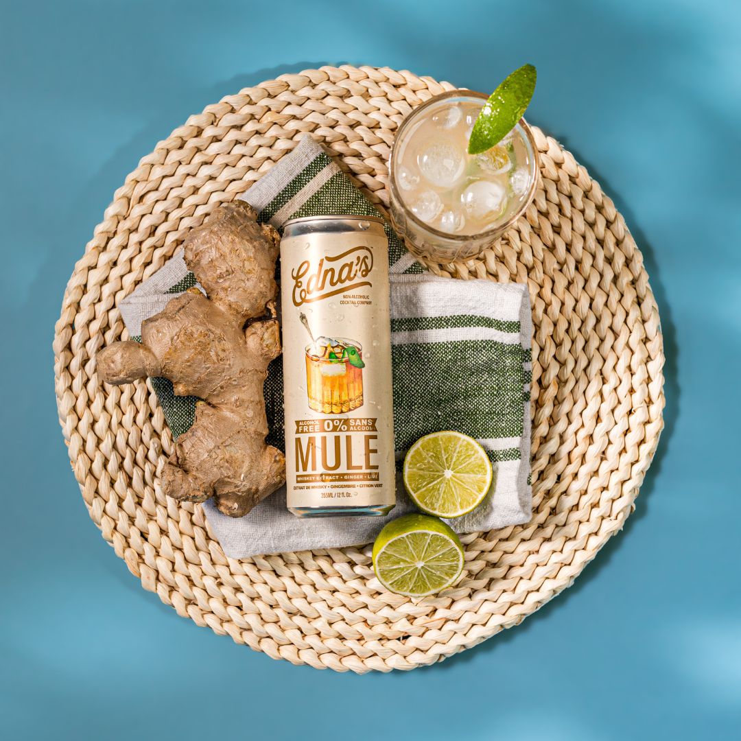 Indulge in Edna's Sparkling Alcohol-Free Mule, a tantalizing blend of natural ginger, zesty lime juice, and a touch of Bourbon whiskey essence. Crafted with precision in small batches, our mocktail recipes feature a harmonious combination of all-natural juices, shrubs, extracts, and oils, resulting in intricately layered and full-bodied flavors reminiscent of their alcoholic counterparts. Experience the complexity and character of our non-alcoholic creations, free from artificial flavors or additives.