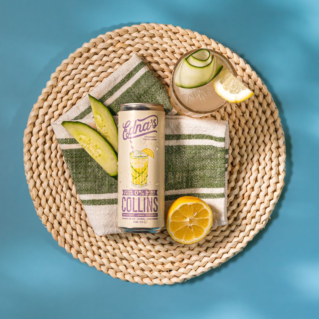 Experience the refreshing taste of Edna's sparkling alcohol-free Collins. Bursting with the vibrant flavors of lemon citrus, subtle hints of natural cucumber, and the essence of juniper Gin, this mocktail is a delightful alternative to traditional cocktails. Crafted in small batches, each recipe features all-natural juices, shrubs, extracts, and oils, resulting in a complex and characterful drink that rivals its alcoholic counterparts. Say goodbye to artificial flavors and additives and savor the goodness of Edna's non-alcoholic mocktail.