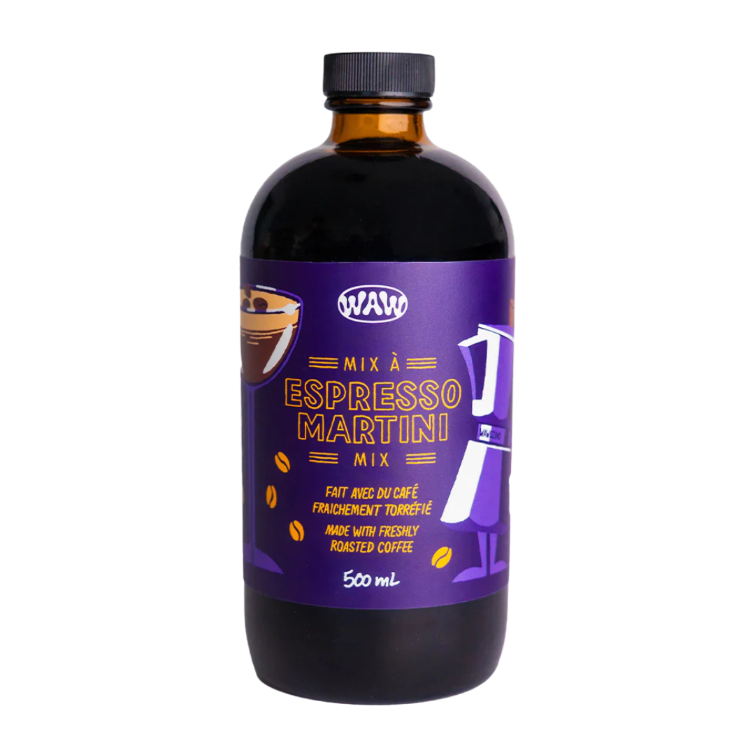 WAW – Espresso Martini Mix is the ultimate cocktail mixer for coffee lovers, crafted to deliver the rich, bold flavors of an Espresso Martini with maximum simplicity. Made with real freshly roasted and ground coffee, coffee liqueur flavors, and the perfect touch of sugar, it lets you create the perfect Espresso Martini every time—alcoholic or alcohol-free.