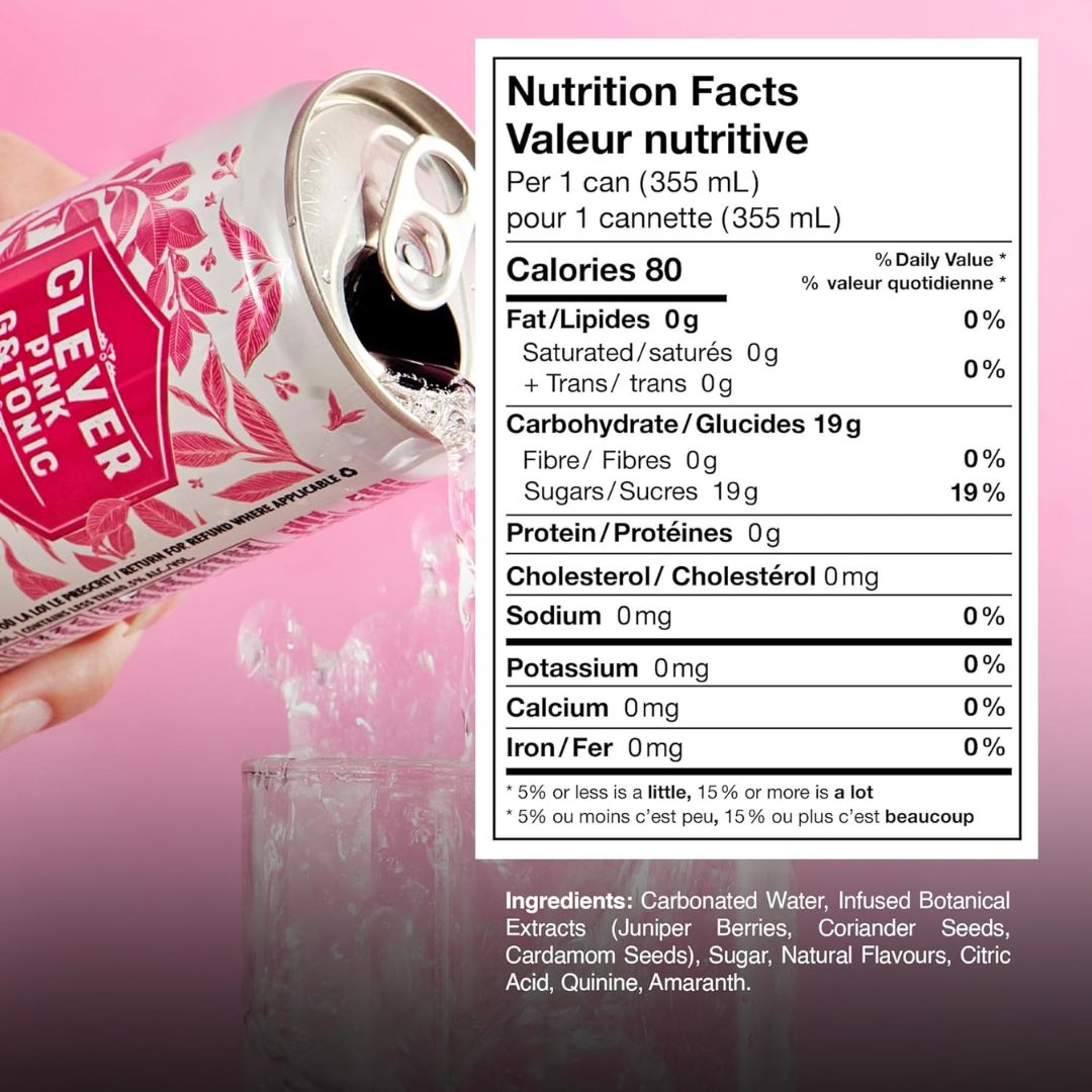 Ingredients: Carbonated water, infused botanical extracts(juniper berries, coriander seeds, cardamom seed