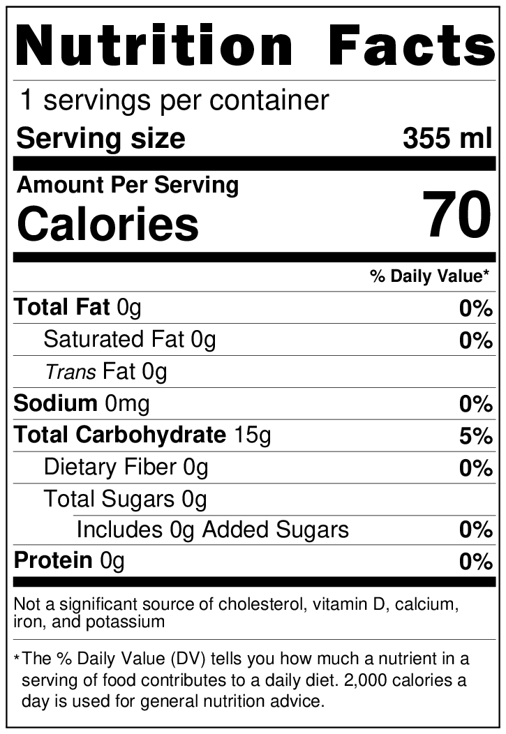 Ingredients: Water, Malted Barley, Wheat, Spices (Dill Seed, Peppercorn, Yellow Mustard Seed, Coriander, Garlic, Himalayan Salt), Vinegar, Cucumber Concentrate, Hops, Yeast.