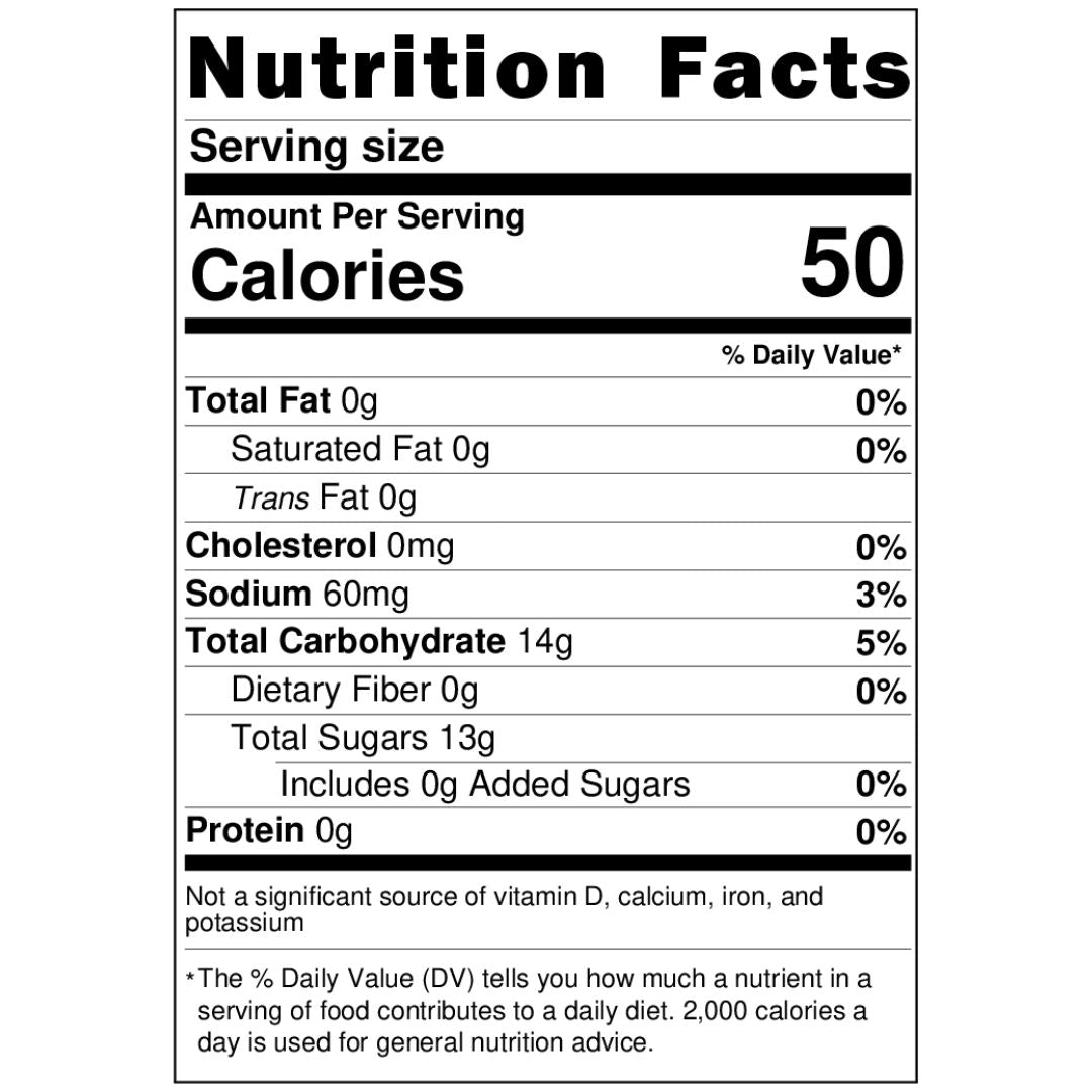Ingredients: Natural spring water, sugars, natural flavors, citric acid, carbon dioxide, potassium sorbate, sodium benzoate, natural coloring.
