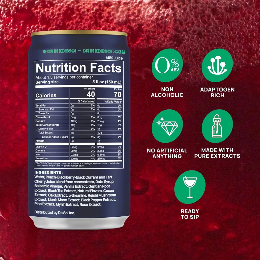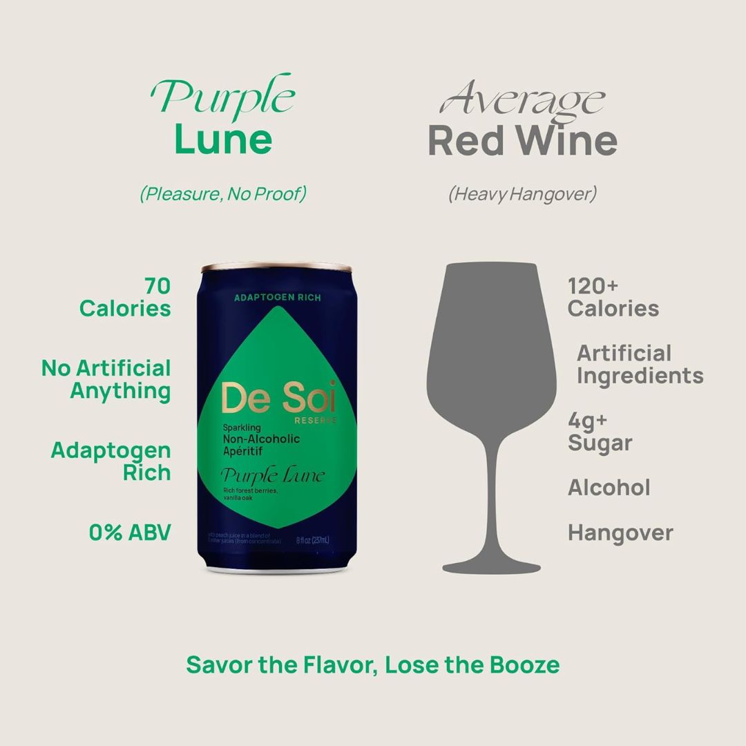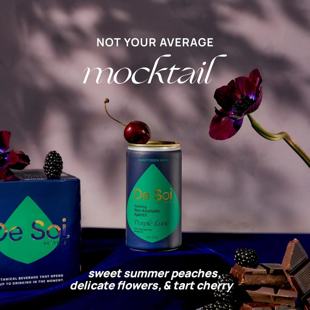 De Soi - Purple Lune is made with ashwagandha and tart cherry, botanicals that bring your body into balance. Rich and delicate, this elixir has notes of blackberry nectar, vanilla oak, and rose petals. It’s complex, but not exhausting.