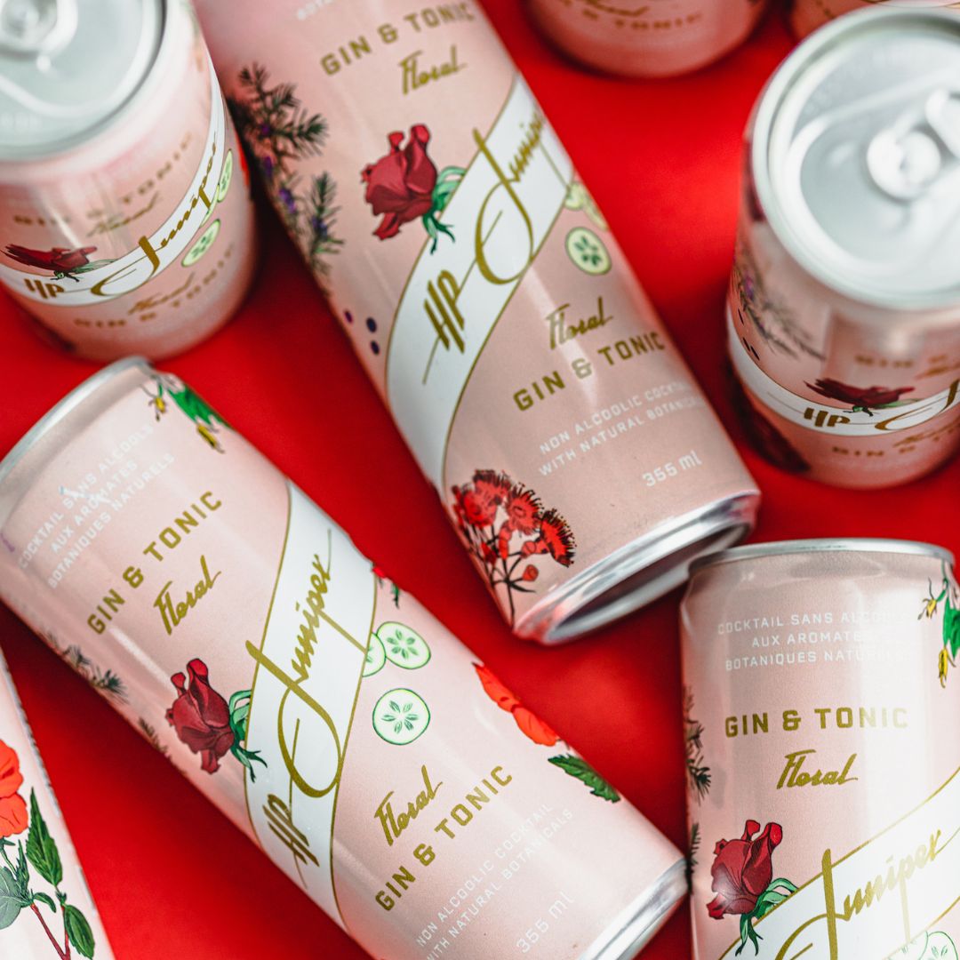Discover the exquisite taste of HP Juniper Floral Gin and Tonic Mocktails, meticulously crafted to deliver a harmonious blend of natural botanicals and top-tier tonic water. Handmade in Quebec, these small-batch mocktails epitomize quality and freshness by incorporating locally sourced ingredients like rose, hibiscus, eucalyptus, cucumber flowers, and the quintessential juniper berries. Immerse yourself in the refreshing flavors of this non-alcoholic concoction, designed to elevate your mocktail experience to new heights.