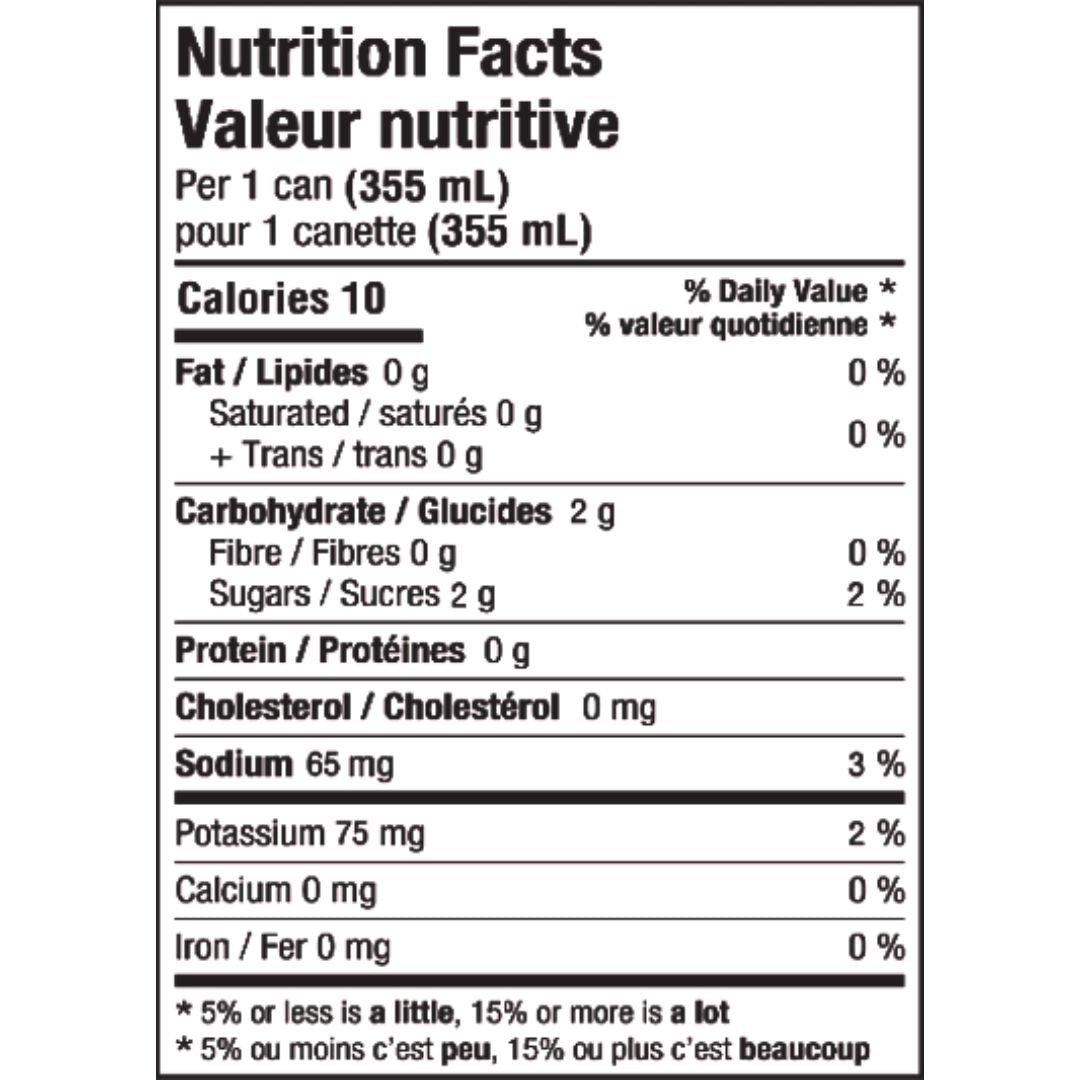 Ingredients: Carbonated filtered water, sugars (agave syrup), citric acid, natural flavour, concentrated lime juice, sodium citrate, sea salt.