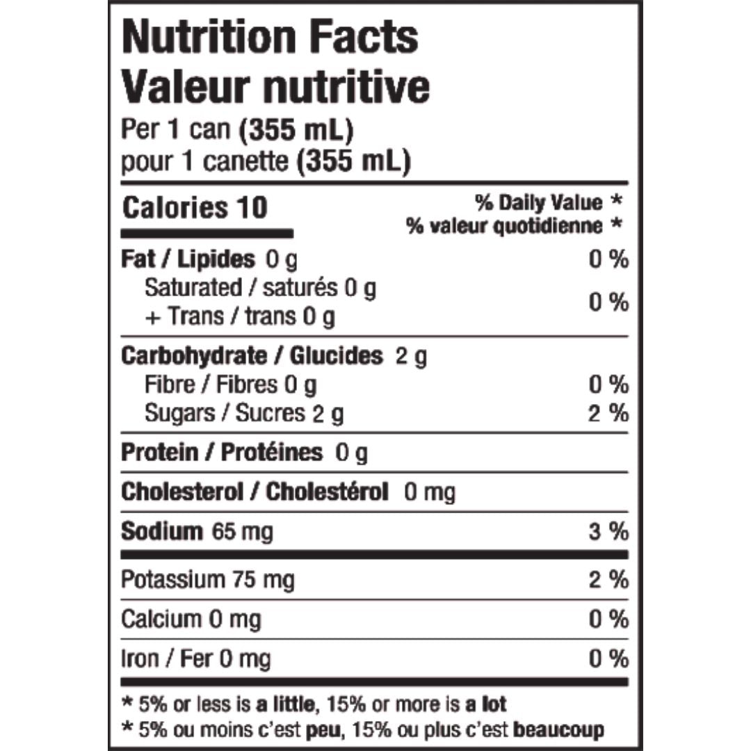 Ingredients: Purified carbonated water, natural flavors, cane sugar, citric acid, electrolytes (monopotassium phosphate, sodium citrate, sea salt), concentrated mango juice.