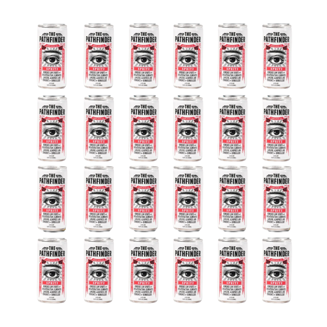 This is truly a spritz like no other. It's not orange, or pink, or red. It is a light shade of caramel, because it's created with our bad vibe destroying signature spirit. The Pathfinder Spritz is our answer to mundane mocktails and lackluster libations. With citrus zest, an abundance of refreshing botanicals, and bubbles that endlessly levitate, this cocktail is sure to remedy low spirits and dissatisfaction.