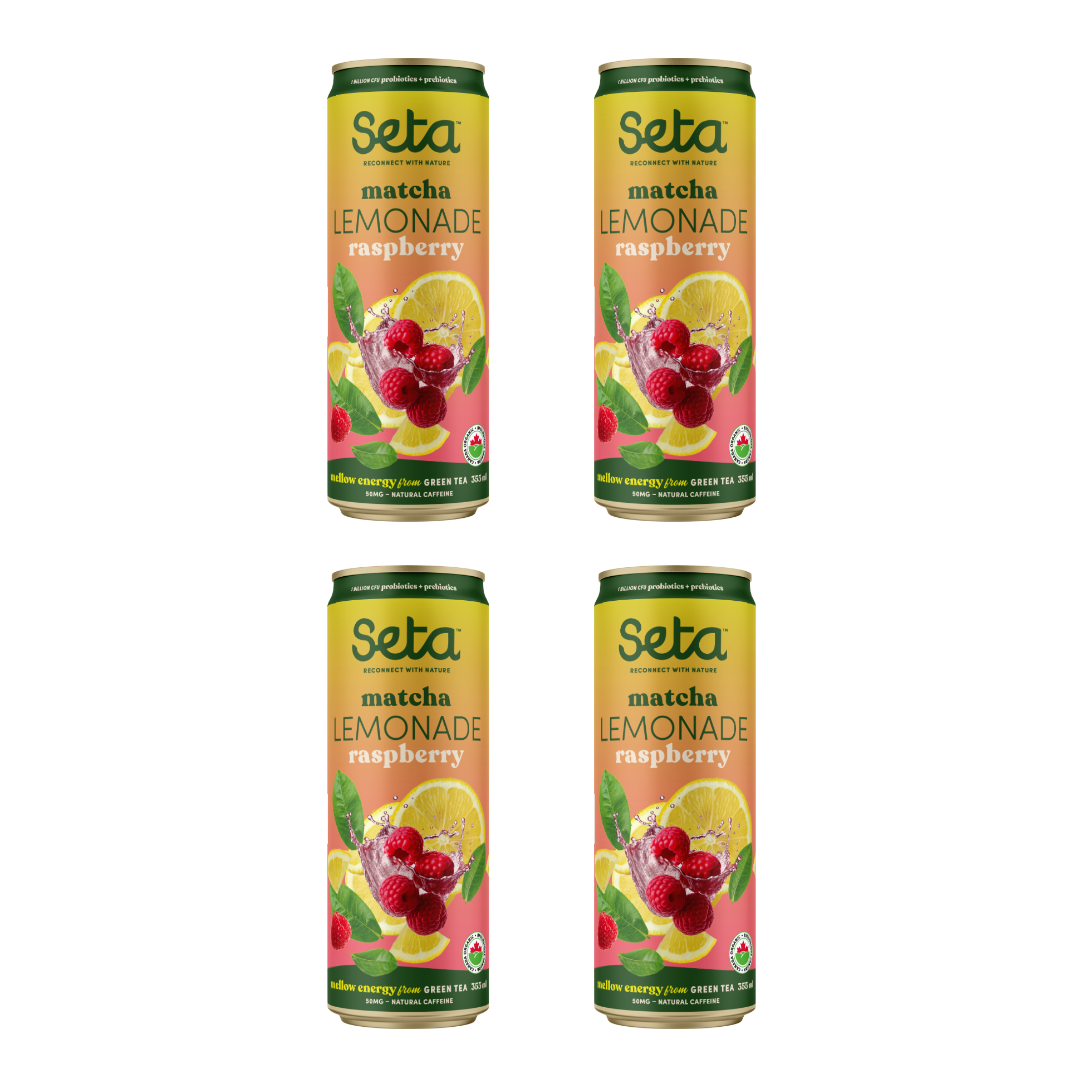Seta Matcha Lemonade – Raspberry is a vibrant and refreshing blend of organic Japanese matcha and tangy raspberries. With 50mg of natural caffeine from green tea, it delivers a mellow and smooth energy boost. Infused with 1 billion CFU vegan probiotics and 3g of prebiotic fiber, it supports a healthy gut, making it the perfect balance of flavor and wellness. With only 8g of sugar per can and no stevia, it's a guilt-free way to hydrate and energize.